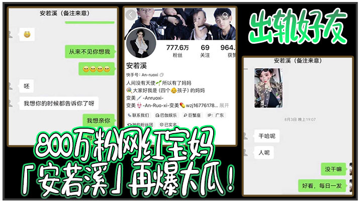 首页  »  首页  »  主播网红  »  800万粉网红宝妈安若溪再爆大瓜出轨好友北川还拍摄性爱视频